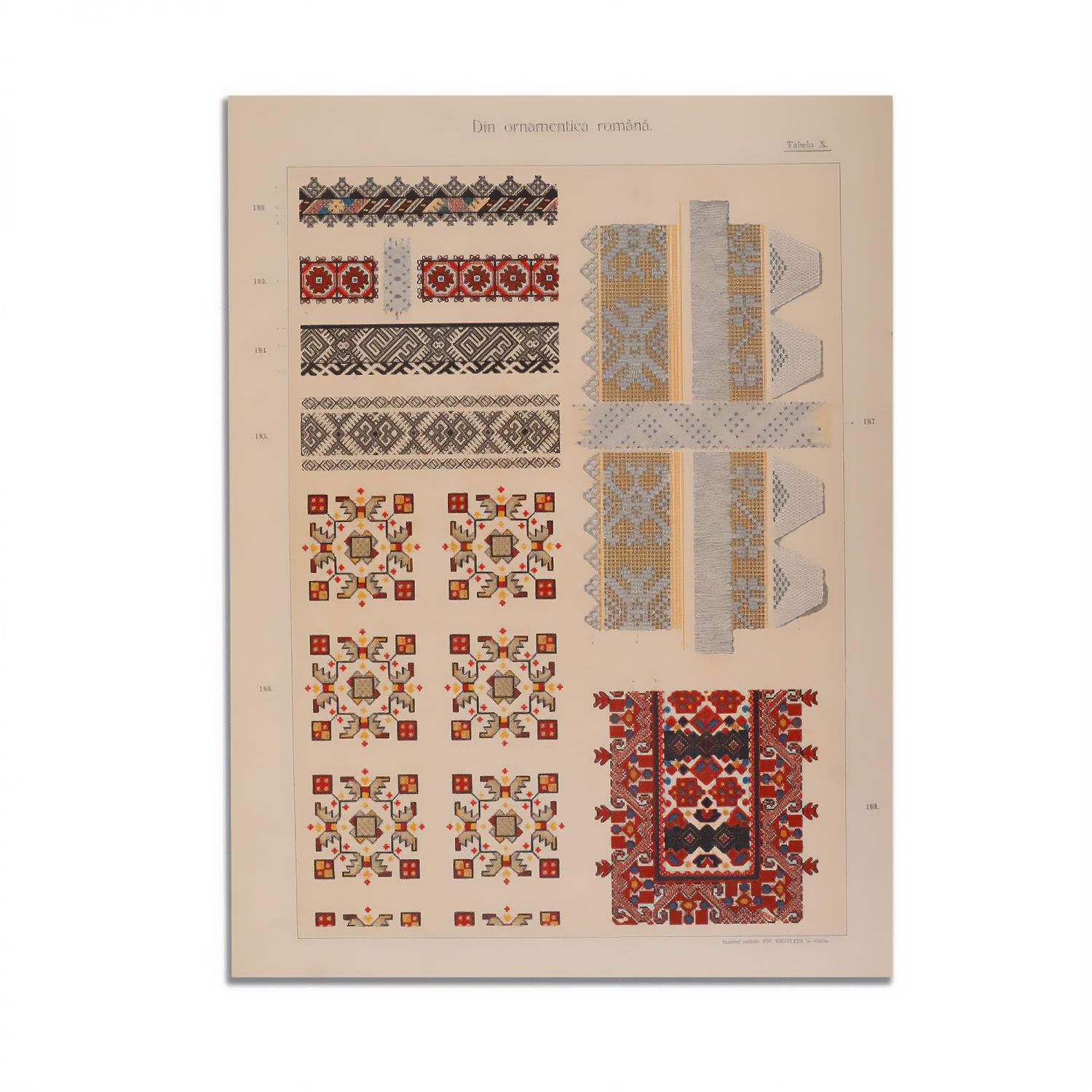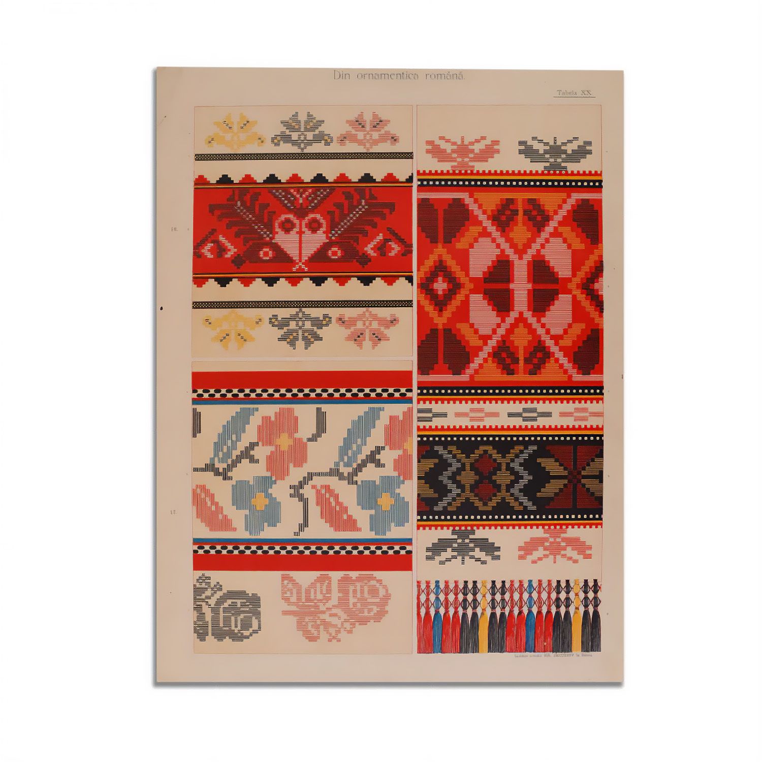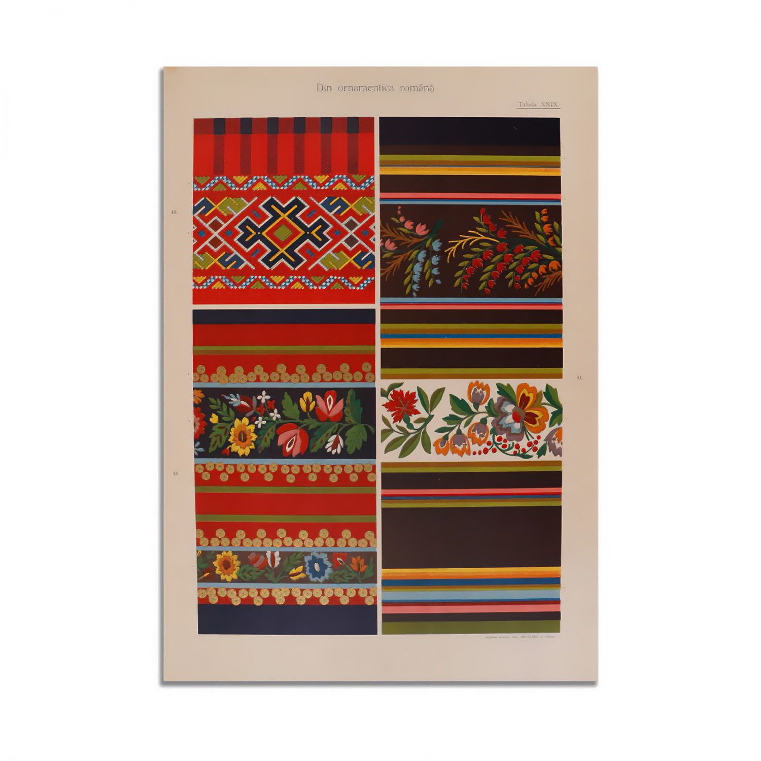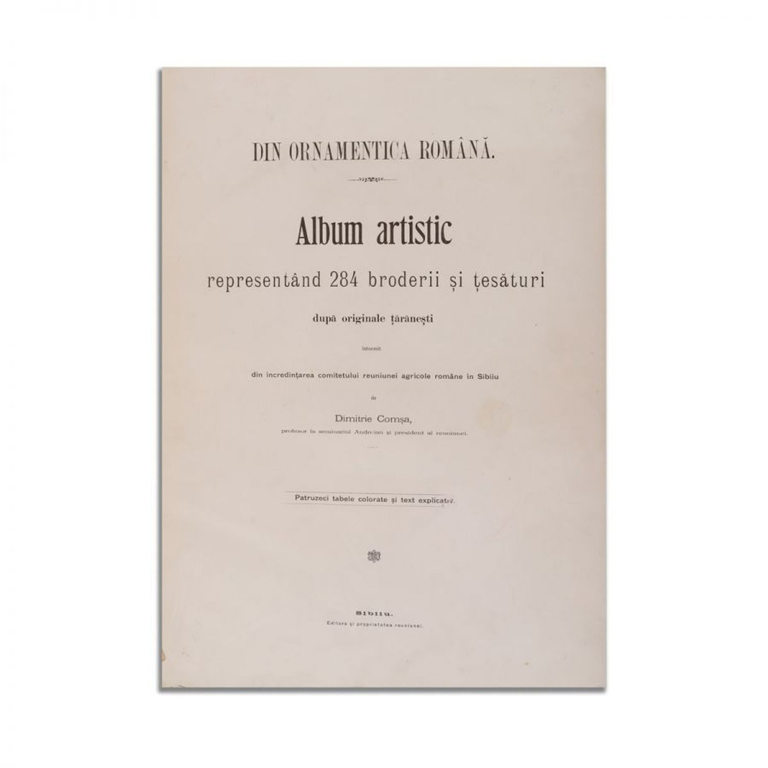 Din ornamentica română, Album de broderii și țesături românești. Album artistic cu 40 de planșe colorate reprezentând 284 broderii și țesături originale țărănești, întocmit din încredințarea comitetului reuniunii agricole române în Sibiu de Dimitrie Comșa, Sibiu.